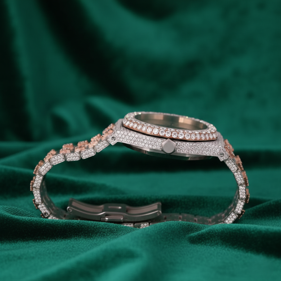 นาฬิกาหรู PJ VVS มอยส์ซาไนต์ ประดับเพชรเต็มหน้าปัด ทรงแปดเหลี่ยม ระบบออโตเมติก สายสแตนเลส กระจกแซฟไฟร์ หน้าปัดตัวเลขอารบิก สำหรับทั้งชายและหญิง