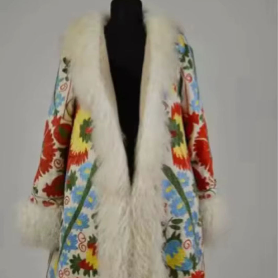 เดรสยาวปานกลางผ้าฝ้ายปักลายวินเทจ 100% เอวทรงธรรมชาติ
