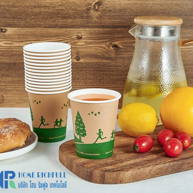 แก้วกระดาษย่อยสลายได้ PLA พิมพ์โลโก้ได้ ขนาด 6-32 ออนซ์ ผลิตจากเยื่อไม้ แก้วกระดาษแบบผนังชั้นเดียว สำหรับเครื่องดื่มร้อน/เย็น