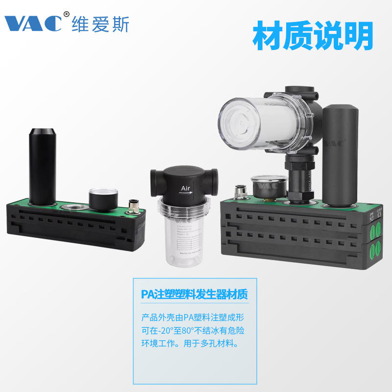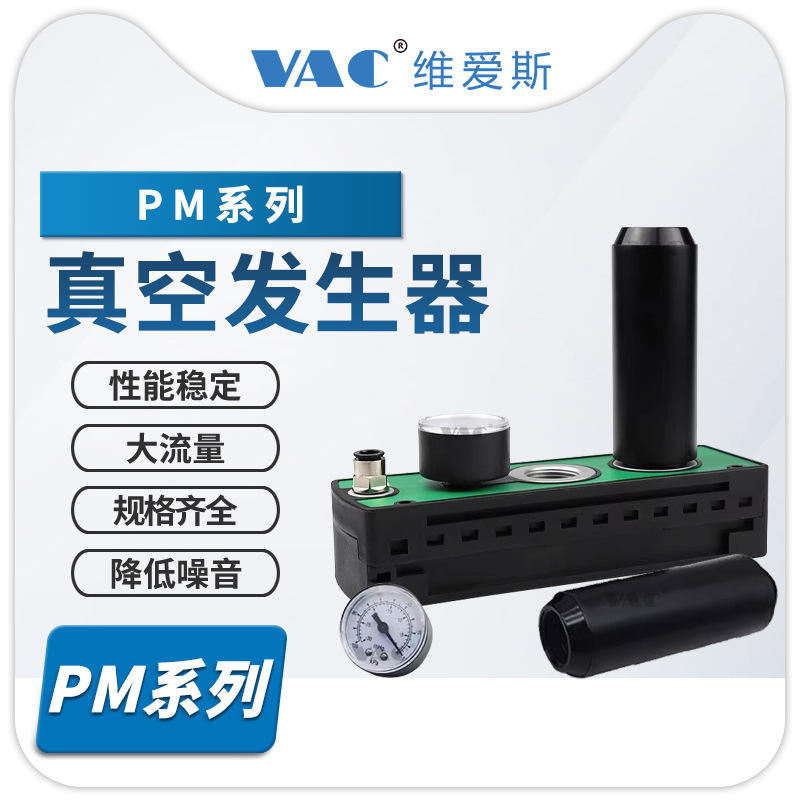 เครื่องกำเนิดสุญญากาศหลายขั้นตอนแบบสูญญากาศสูง รุ่น PM ซีรีส์ อัตราการไหลสูง กำลังดูดสูง ประเภท 401/2/3/4/5/6VTM สำหรับเครื่องยกสุญญากาศ