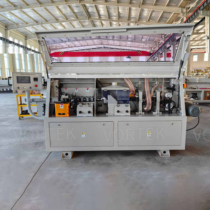เครื่องปิดขอบอัตโนมัติความเร็วสูง Vortek PM50A+ สำหรับขูดและติดกาวแผ่นไม้ MDF บานตู้เฟอร์นิเจอร์