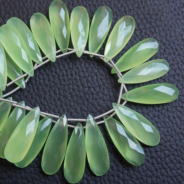PME ARRIVAL CY1 prehnite สีเขียวเหลี่ยมเพชรพลอยยาวหยด briolette คู่เครื่องประดับ Chalcedony กับพลอยลูกปัดหิน