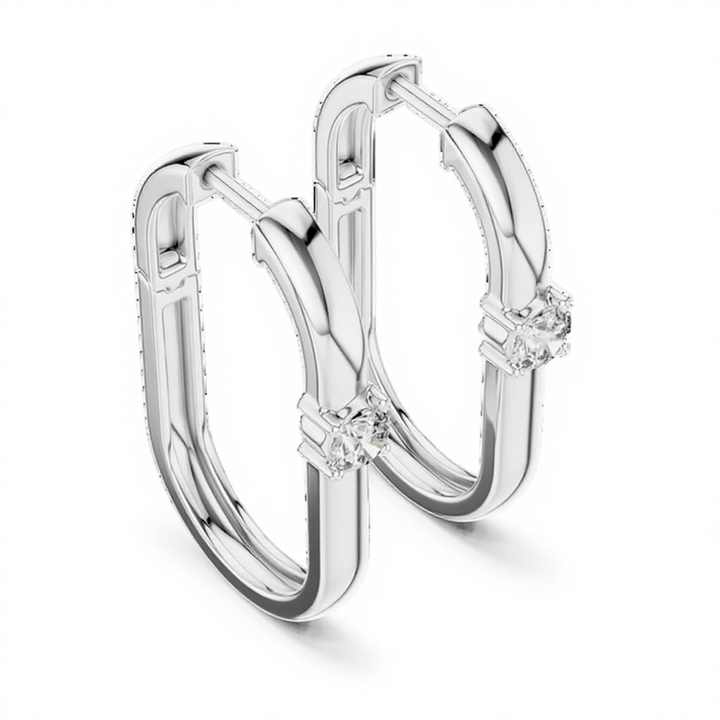 POCKET FRIENDLY RHODIUM PLATED LUXURY HOOP EARRINGS SET 18KT WHITE GOLD LAB GROWN BRILLIANT CUT 0.4CT IGI CERTIFIED EVERYDAY