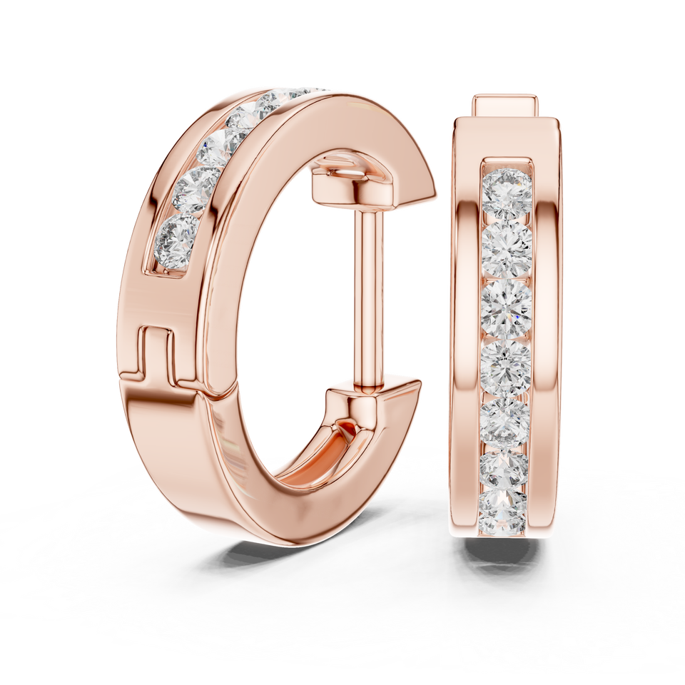 ชุดต่างหูห่วงหรูหราแบบพกพาสะดวก ทองคำชมพู 18 กะรัต เพชรเพาะเลี้ยงในห้องปฏิบัติการ รับรองโดย IGI ชุบโรเดียม เหมาะสำหรับใส่ทุกวัน สวยหรู