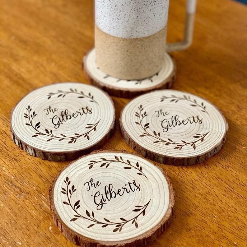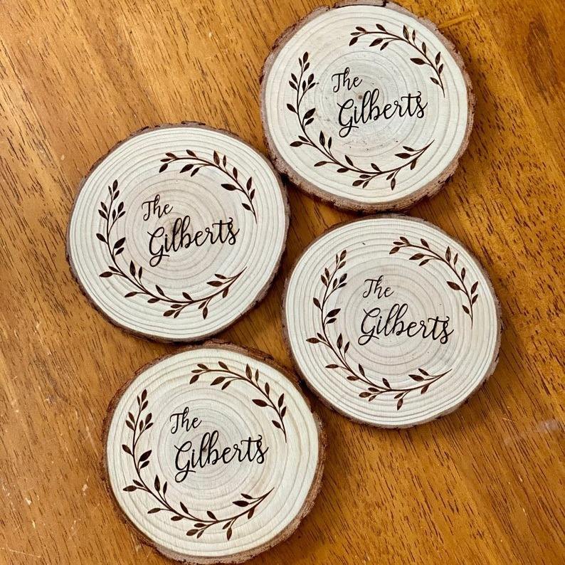 ชุดจานรองแก้วไม้ซีดาร์แกะสลักแบบคลาสสิก POD พร้อมฐานไม้สลักชื่อ-ของตกแต่งบ้าน จานรองแก้วสำหรับเครื่องดื่ม