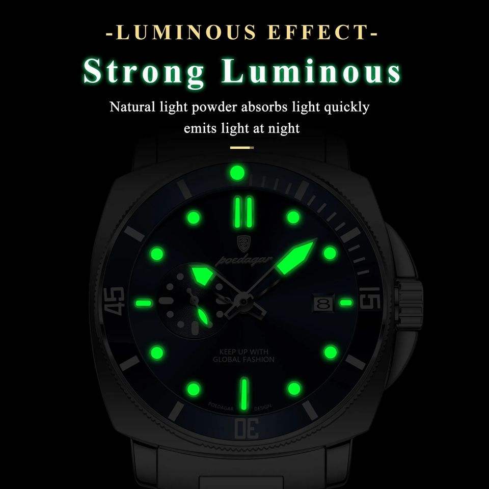นาฬิกาข้อมือผู้ชาย POEDAGAR รุ่น 873 แฟชั่นใหม่ สายเหล็ก กันน้ำ เรืองแสง ควอตซ์ ปี 2026