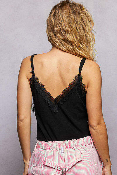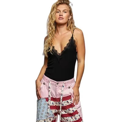 เสื้อสายเดี่ยวคอวีลูกไม้ลายลูกไม้