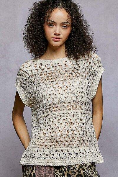 เสื้อโครเชต์คอกลมลายฉลุ POL