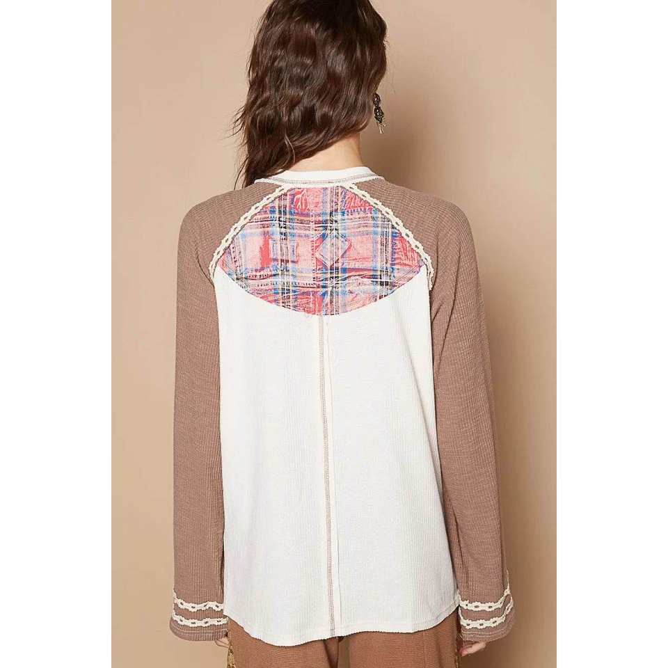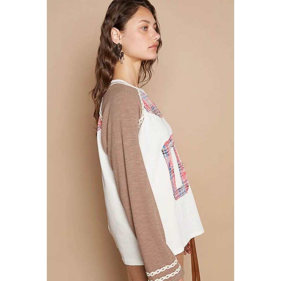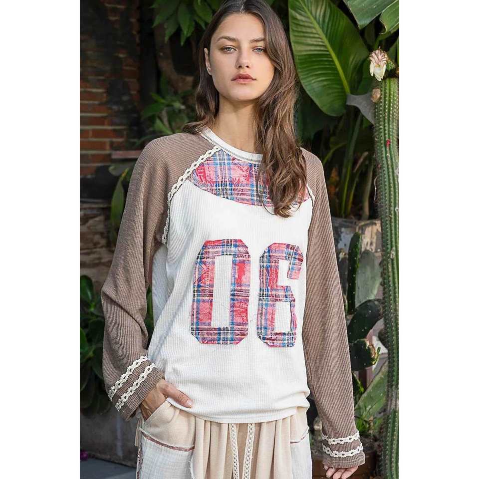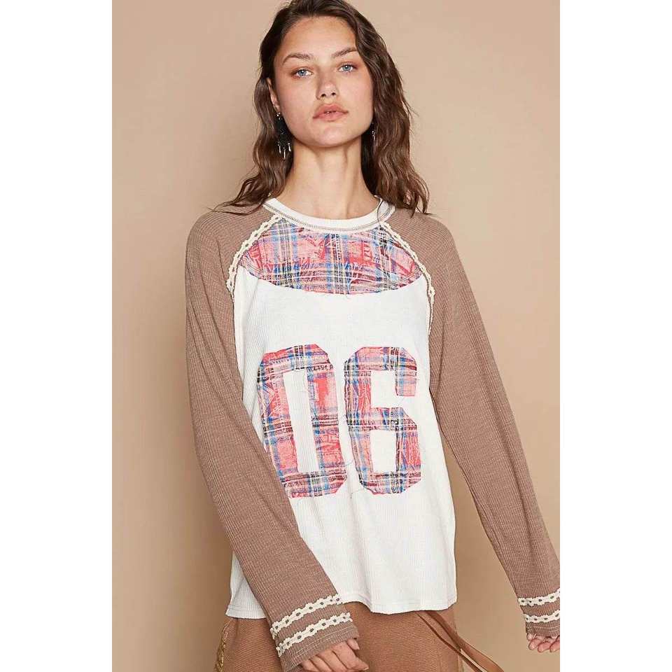 POL เสื้อยืดสตรีแขนแร็กแลนลายสก๊อตเบอร์06