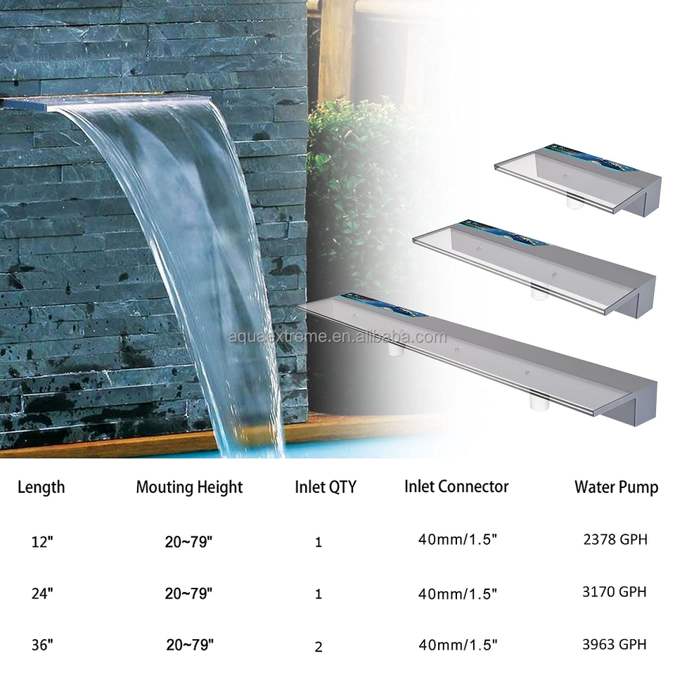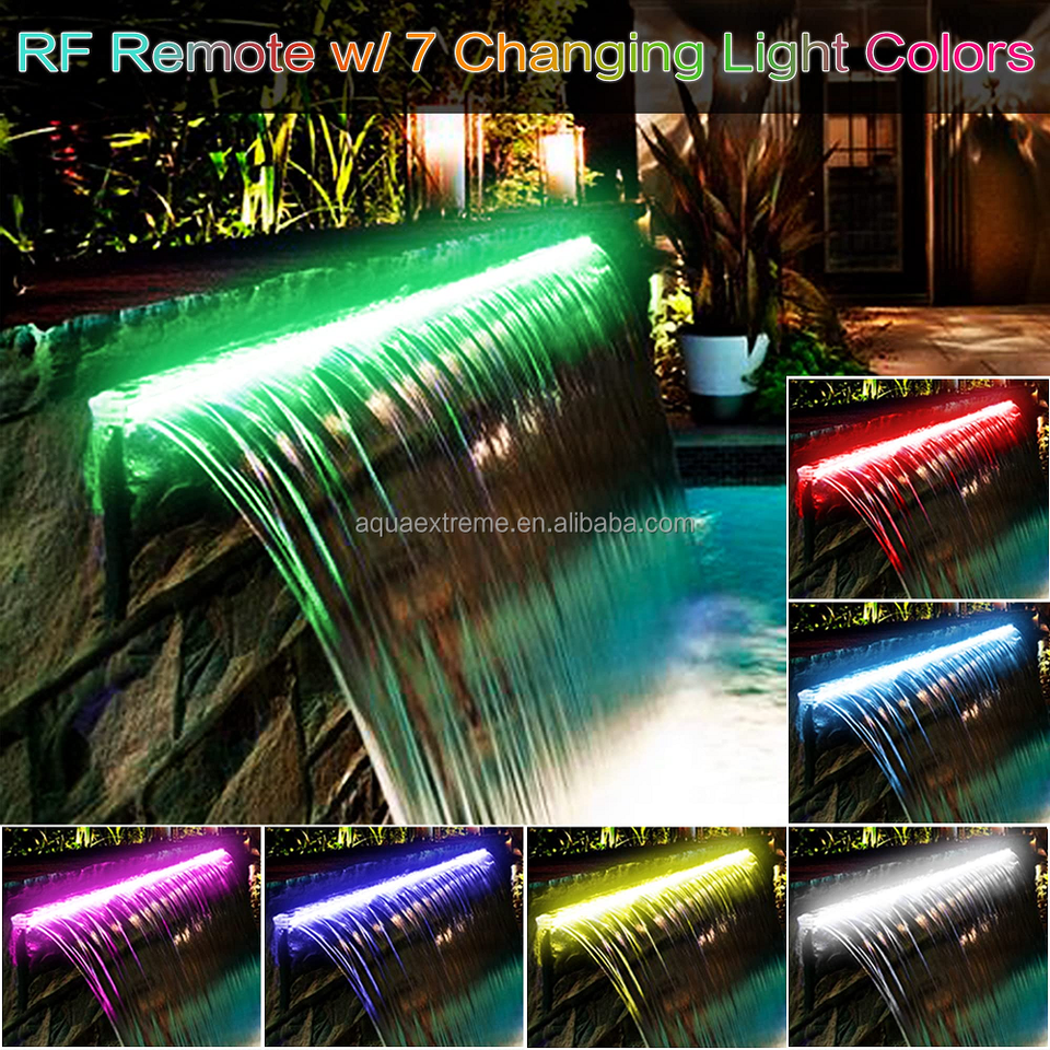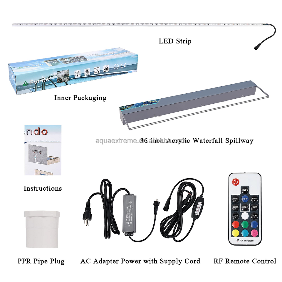 น้ำพุตกน้ำ PONDO ขนาด 36 นิ้ว พร้อมไฟ LED เปลี่ยนสีได้ 7 สี และรีโมท รางน้ำอะคริลิกสำหรับตกน้ำแบบเรียบ สำหรับสวนกลางแจ้ง