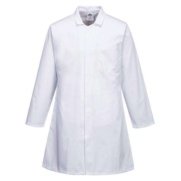 เสื้อโค้ทอาหารผู้ชายสีขาว2206มีกระเป๋าสามใบสำหรับเชฟ5036108239832และชุดทำงานในอุตสาหกรรมอาหาร