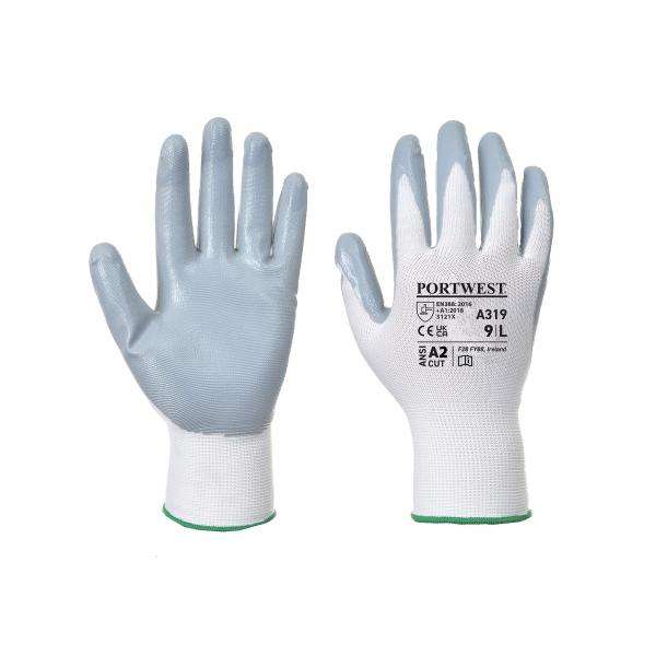ถุงมือยางไนไตรล์แบบยืดหยุ่นสำหรับ A319GRWM ถุงมือสีเทา/สีขาวถุงมือ5036108150465ยีน