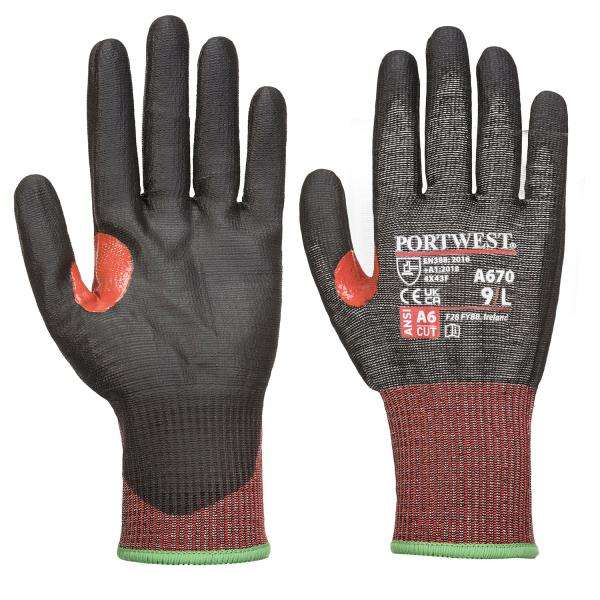 Portwest-A670K8RL CS AHR13ถุงมือสีดำตัดจากโพลียูรีเทนถุงมือ5036108360901ของยีน