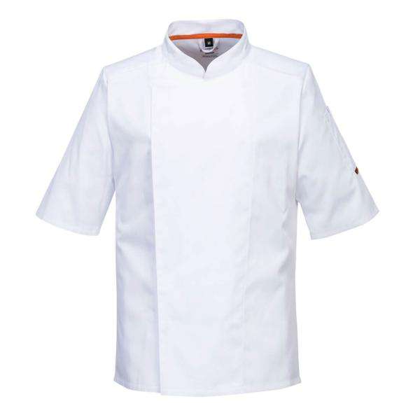 เสื้อแจ็กเก็ตแขนสั้นสำหรับมืออาชีพผ้าตาข่ายยืด C746WHRS สีขาวของเชฟ5036108389216สีขาวและชุดทำงานในอุตสาหกรรมอาหาร