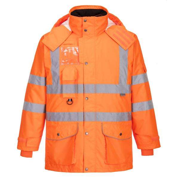 Portwest RT27ORR5XL ความปลอดภัยสูง7-in-1การจราจร RIS แจ็คเก็ตสีส้มชุดทำงาน HI-VIS
