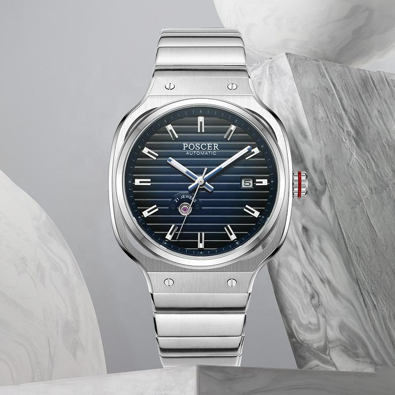Poscer นาฬิกาข้อมือกลไกหรูหราระดับไฮเอนด์สำหรับผู้ชายรุ่น8215กันน้ำ50ม. หน้าปัด26มม. 5มม. นาฬิกาสแตนเลส