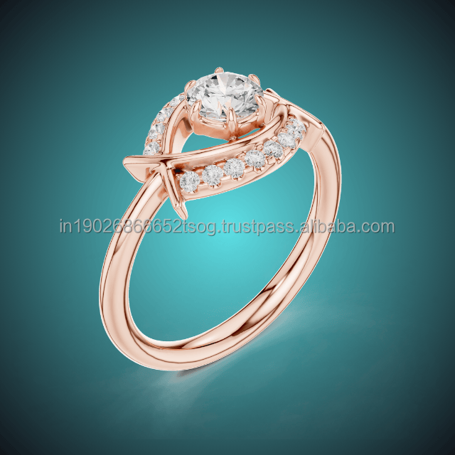 แหวนหมั้นเพชรทรงกลมเจียระไนแบบบริลเลียนท์ ดีไซน์สไตล์ชาติพันธุ์ สำหรับผู้หญิง ทองคำแท้ 14K ยี่ห้อ POSH PURITY ราคาโรงงาน รับสั่งทำพิเศษ