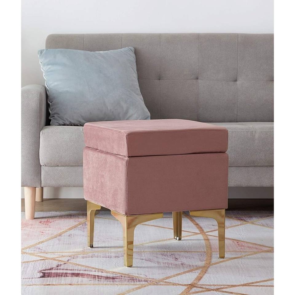 POUF CM 38X38 H. 45 ผ้ากำมะหยี่สีชมพู
