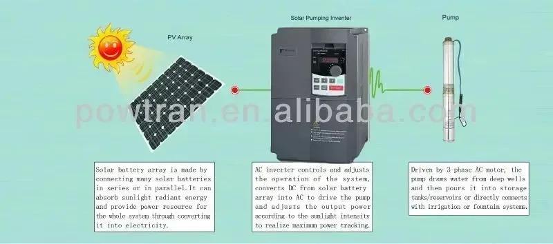 Powtran อินเวอร์เตอร์ปั๊มพลังงานแสงอาทิตย์ประสิทธิภาพสูง22Kw 11KW 18.5KW AC 220V 380V ตัวแปรความถี่ราคาโรงงาน