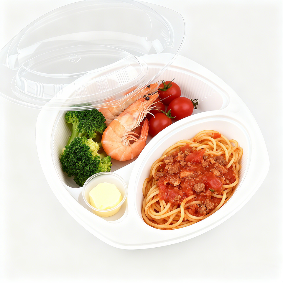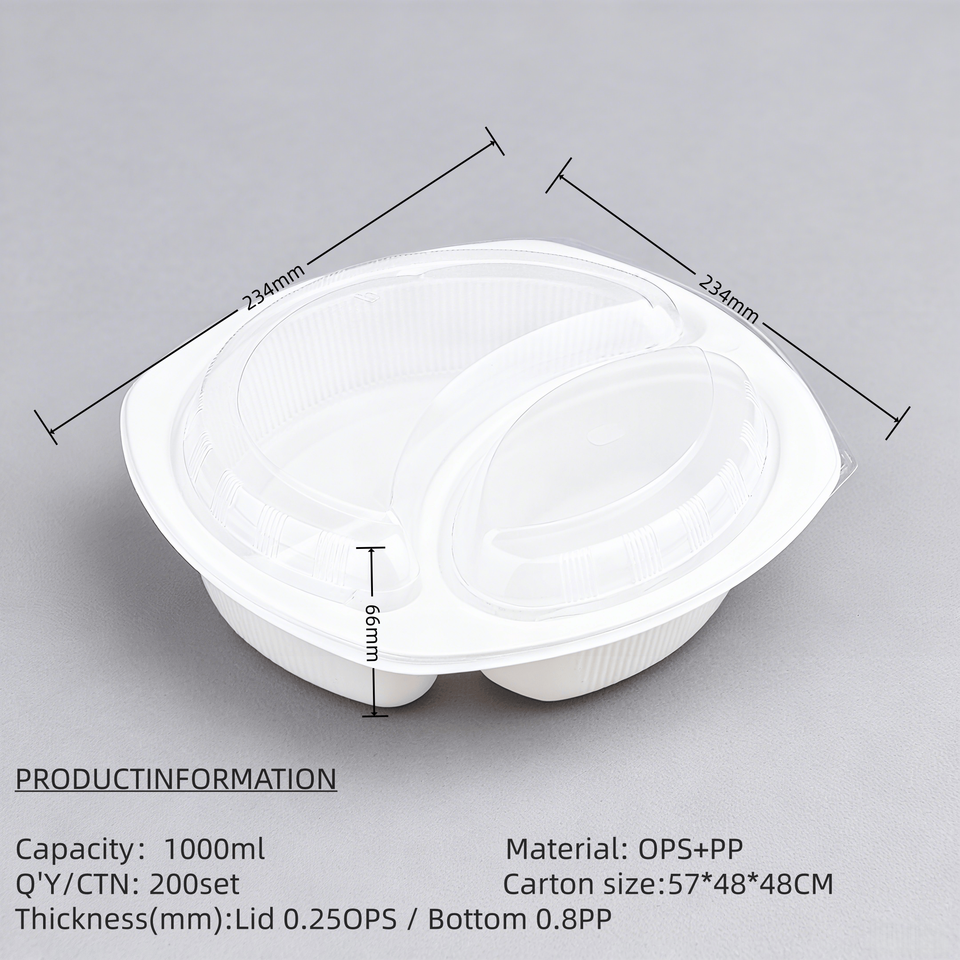 ถาดพลาสติก PP 3ช่องสำหรับใส่อาหารไมโครเวฟแบบใช้แล้วทิ้งภาชนะบรรจุอาหาร
