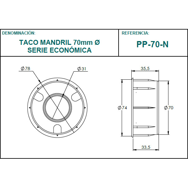 ปลั๊กหลอด PP-70-N 70มม. สำหรับผลิตภัณฑ์บรรจุภัณฑ์และการพิมพ์