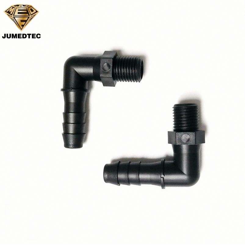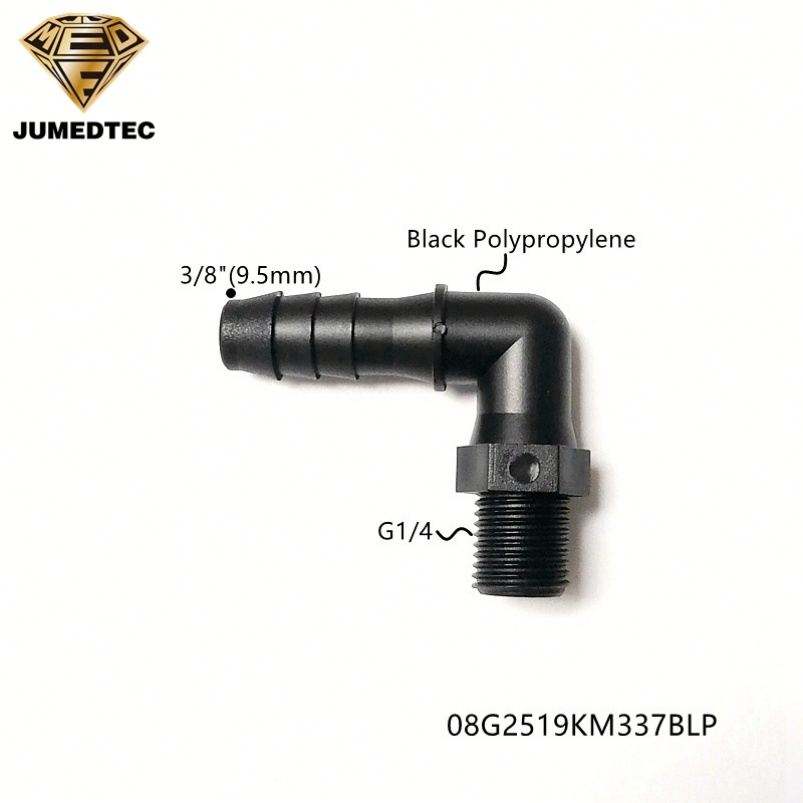 เกลียว NPT ตัวผู้มีข้อต่อโค้งงอ90องศาเกลียวสำหรับตัวผู้มีเกลียว G1สีดำ PP/4 "ถึง3/8นิ้ว