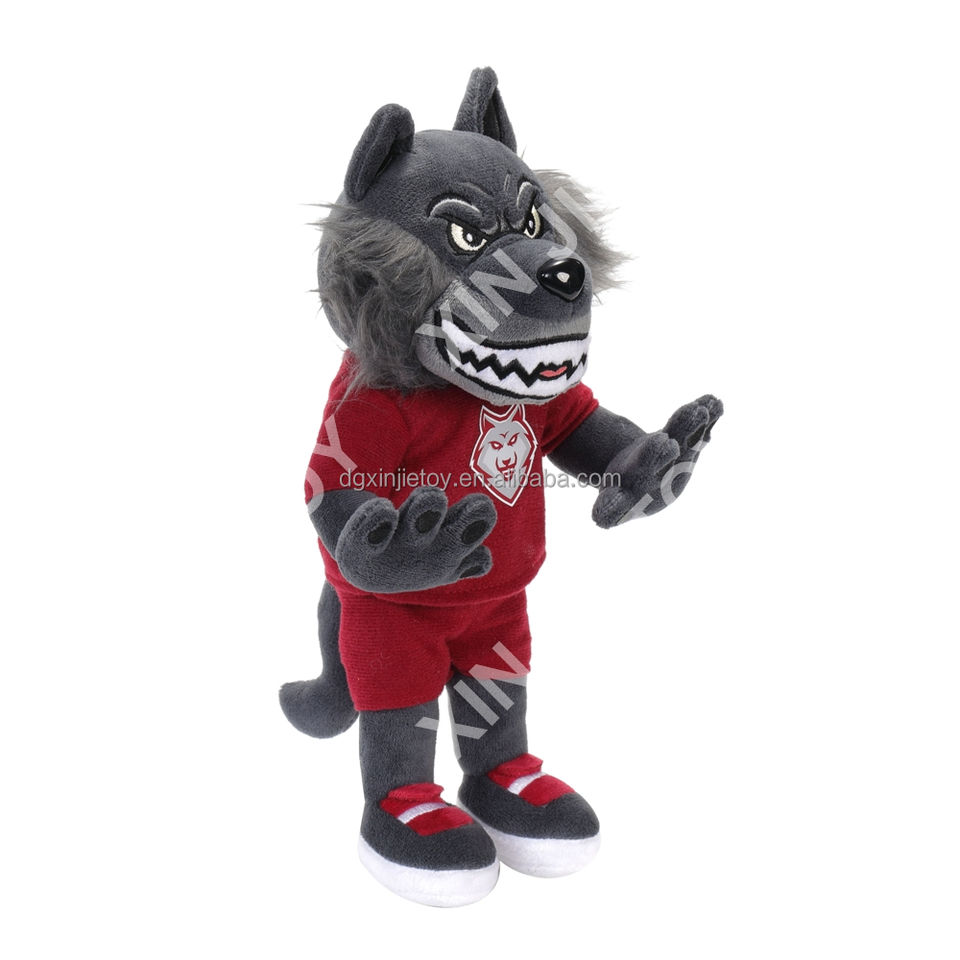 ตุ๊กตาหมาป่าผ้าฝ้าย PP ตุ๊กตาหมาป่าแบบกำหนดเอง ตุ๊กตาหมาป่าตัวร้ายตัวใหญ่สวมเสื้อผ้า พร้อมบริการ OEM ODM