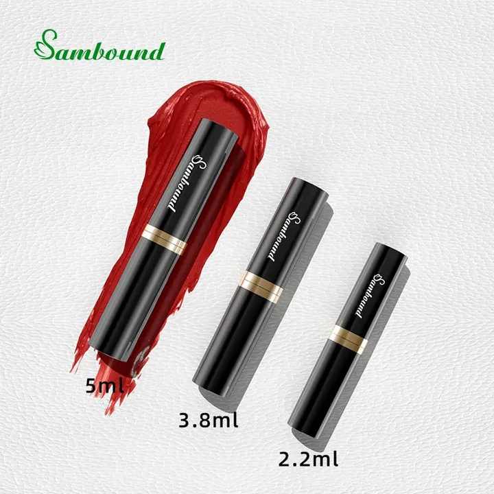 หลอดลิปสติก PP 5 กรัม แบบปั๊ม โลโก้ปรับแต่งได้ พิมพ์ซิลค์สกรีน ทรงเพรียว ปากเฉียง ผิวมันเงา บรรจุภัณฑ์ลิปสติกยี่ห้อ Sambound