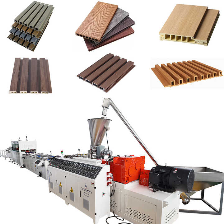 สายการผลิตแผ่นผนังไม้เทียม WPC แผ่นพื้นไม้เทียม แผ่นหน้าต่างและประตู ด้วยกระบวนการอัดรีด