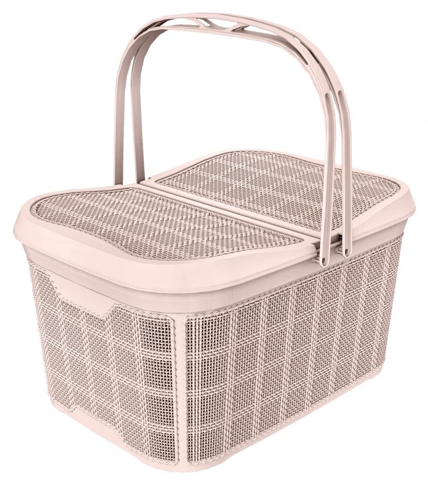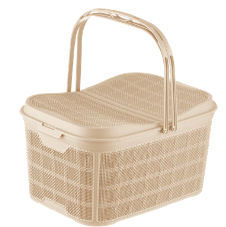 Plastic Picnic Storage Basket with Lid and Carry Handles