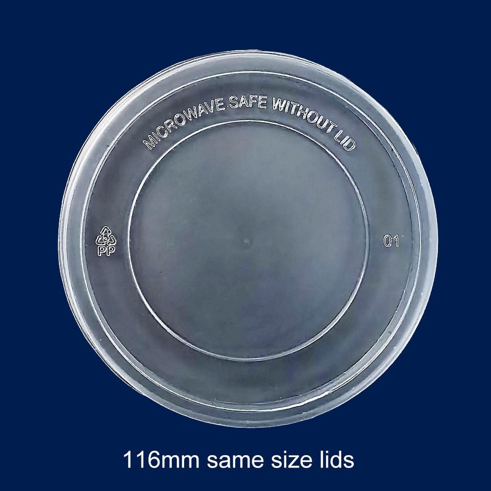 ถ้วยซุปพลาสติกพร้อมฝาปิดชามกลมเกรดอาหารแบบใช้แล้วทิ้งสำหรับทำซุปร้อนก๋วยเตี๋ยวโจ๊กบรรจุภัณฑ์อาหารกลางวัน PP