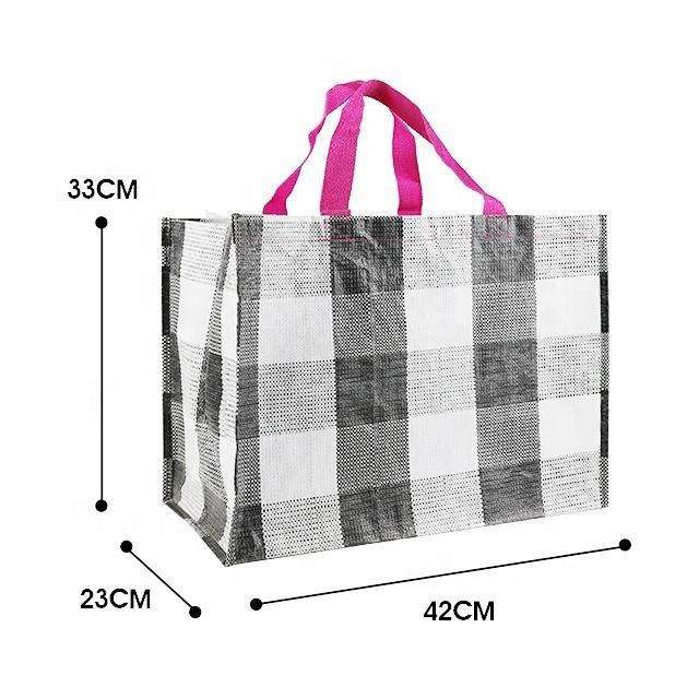 ถุงช้อปปิ้งผ้าทอ PP พร้อมบรรจุภัณฑ์และลวดลายที่ปรับแต่งได้ หูหิ้วแบบไม่ทอ/สายรัด PP หลายขนาด