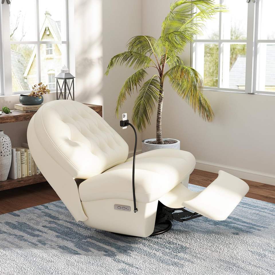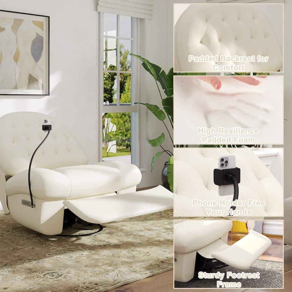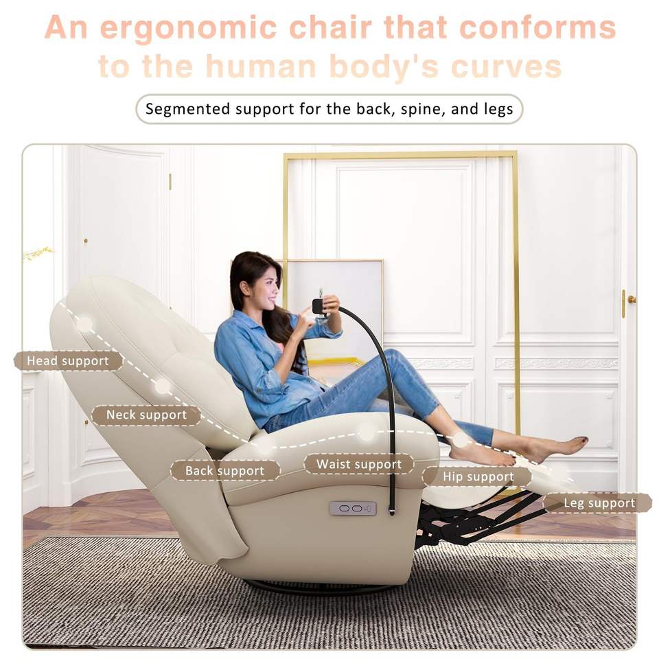 เก้าอี้ปรับเอนแบบหมุนขนาดใหญ่ PPL Power พร้อมพอร์ต USB Type-C และที่วางโทรศัพท์ โซฟาเดี่ยว ควบคุมด้วยปุ่ม