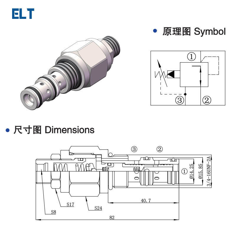 วาล์วไฮดรอลิกแบบควบคุมด้วยนักบิน PPR2-08 สำหรับรถยกพาเลท วาล์วควบคุมแรงดัน วาล์วแบบตลับ สำหรับรถยกมือสอง ใช้ได้หลากหลาย