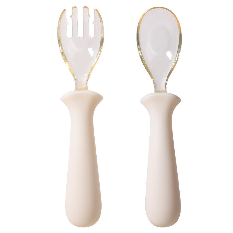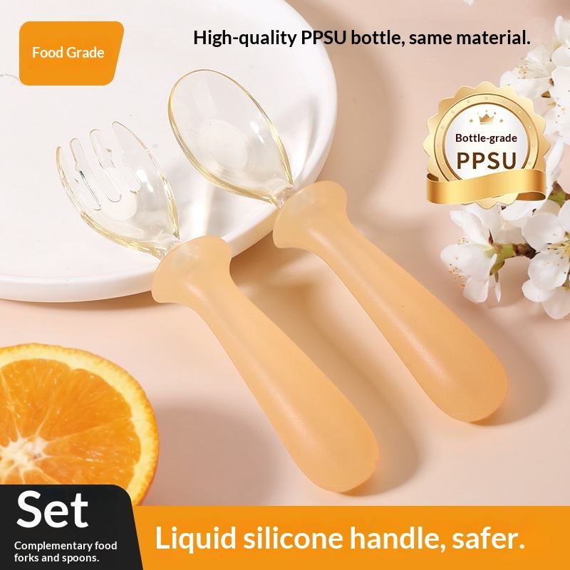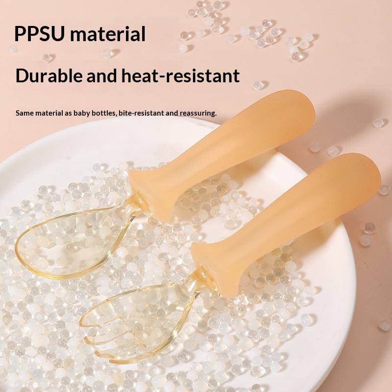 ชุดช้อนและส้อมสำหรับเด็ก PPSU สำหรับฝึกอาหารเสริมเด็ก เด็กเรียนรู้การกินอาหารด้วยตนเอง อายุ 6 เดือนขึ้นไป