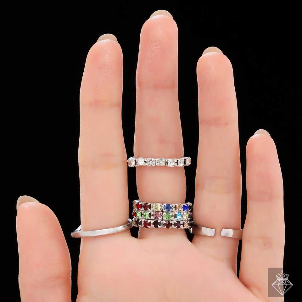 PRAO 4-piece Anti-Tarnish Snake & Crystal Rings Set Adjustable Size