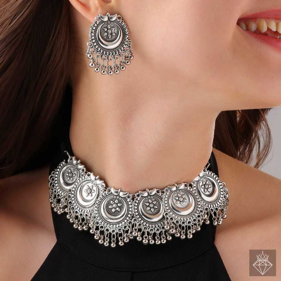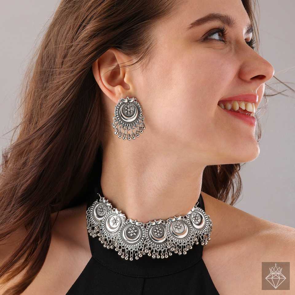 ชุดสร้อยคอทรงสุริยุปราคาแนวชนเผ่าพร้อมต่างหูคอลเลกชันเครื่องประดับแฟชั่นแนวชนยุคดวงจันทร์โบราณของปราโอ