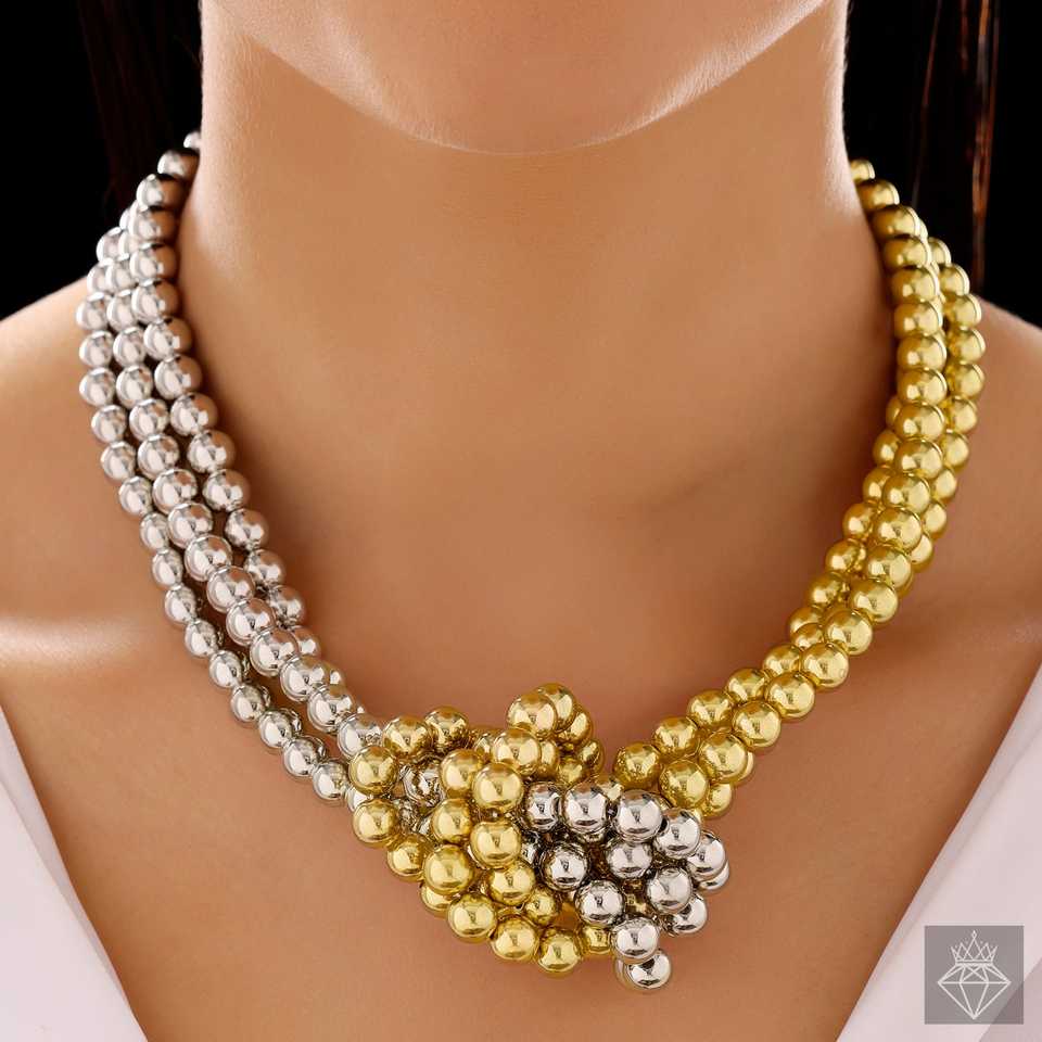 สร้อยคอประดับลูกปัดสีเงินและทองป้องกันการเสื่อมเสียของ Prao