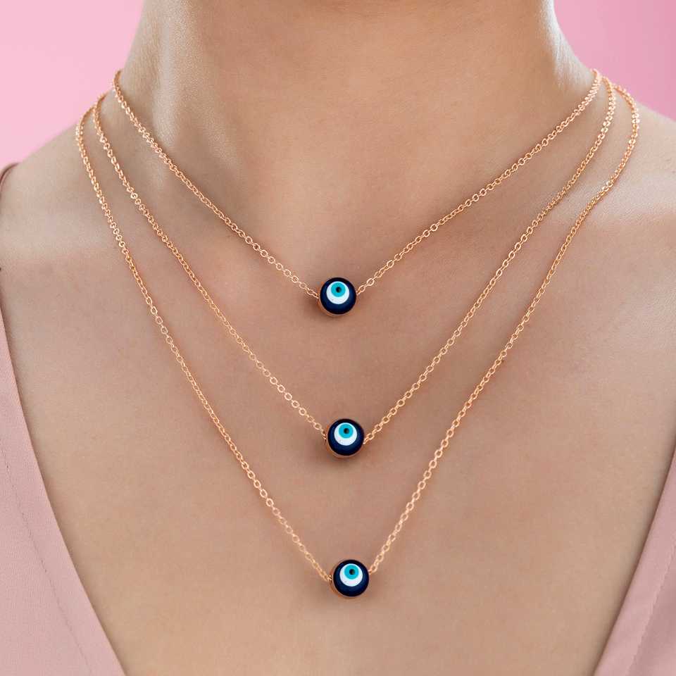 สร้อยคอสีโรสโกลด์หลายชั้นพร้อมจี้ตามีความชั่วร้ายของ Prao