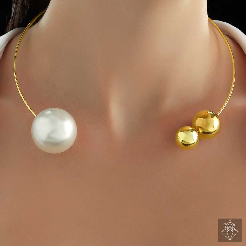 สร้อยคอทองคำเปิดได้พร้อมมุกและลูกจบเครื่องประดับมุกระดับพรีเมี่ยม