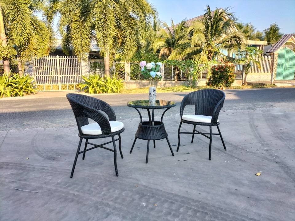 ชุดกาแฟหวายสังเคราะห์สำหรับกลางแจ้ง PRCF-092 เฟอร์นิเจอร์สำหรับพักผ่อนในสวน ลานบ้าน ระเบียง โรงแรม รีสอร์ท ทนทานทุกสภาพอากาศ
