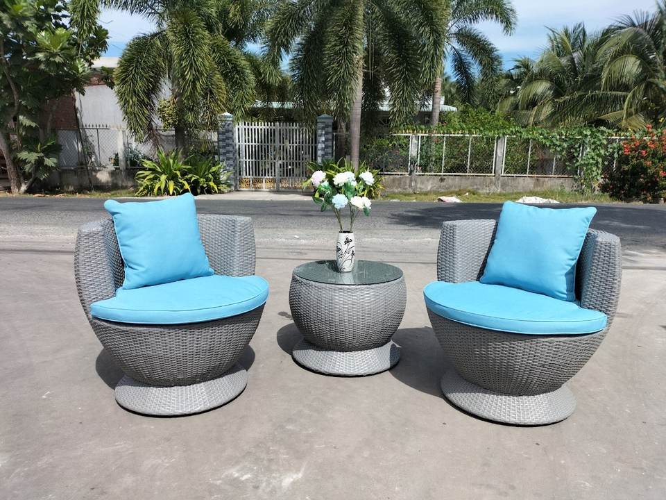 ชุดโต๊ะกาแฟหวายเทียม PRCF-128 สำหรับสวนกลางแจ้ง