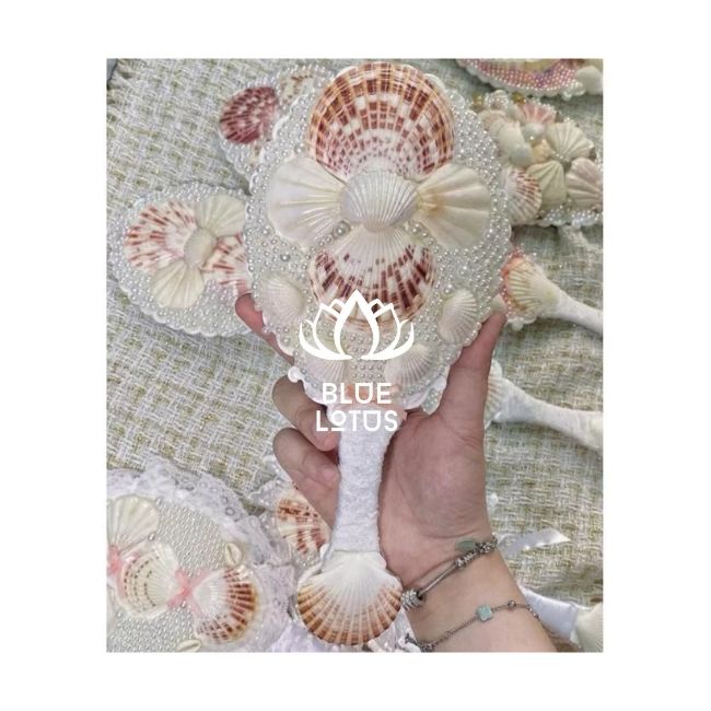 กระจกเปลือกหอยมือถือคุณภาพพรีเมี่ยมอุปกรณ์เสริมหรูหราสำหรับการแต่งหน้าประจำวันและเป็นของขวัญที่มีธีมชายฝั่งที่สมบูรณ์แบบสำหรับงานแต่งงาน