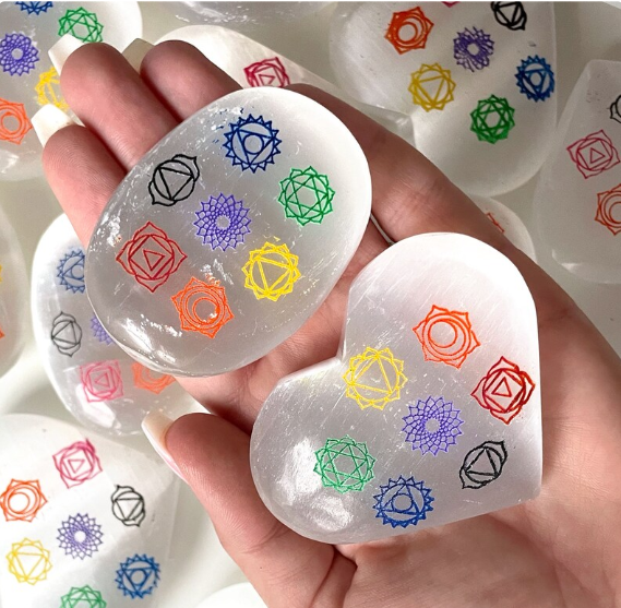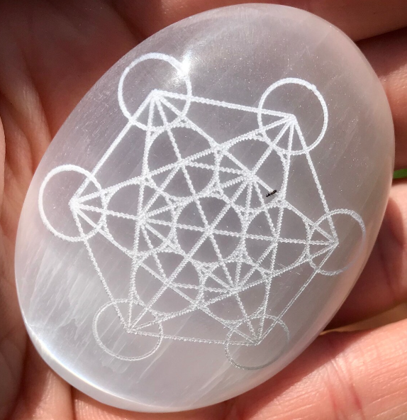 หินซีลิไนต์ทรงฝ่ามือพร้อมสัญลักษณ์จักระ