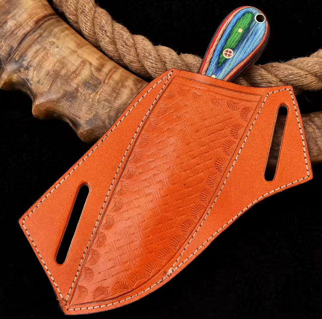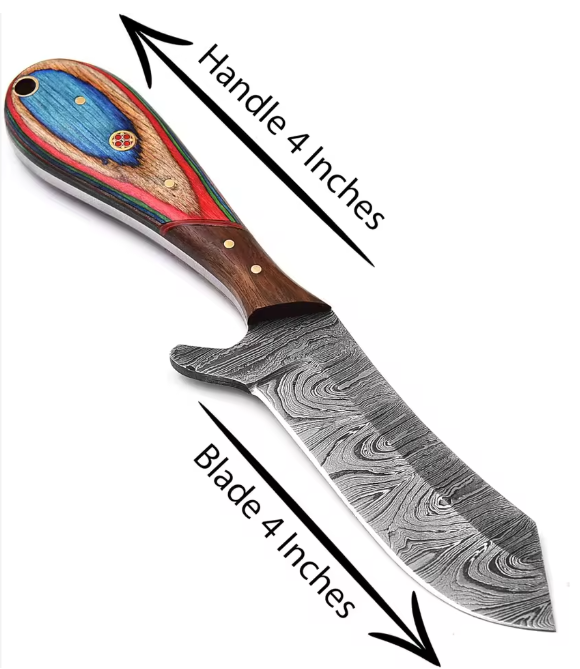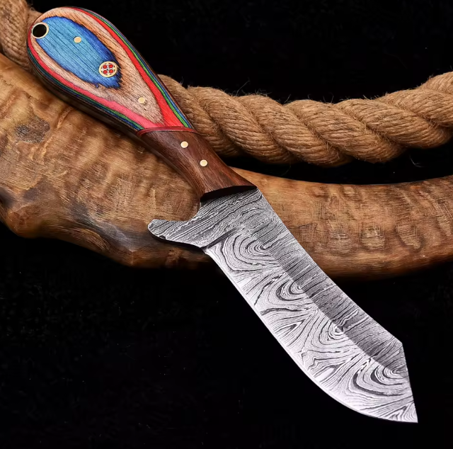 มีดโบวี่สำหรับล่าสัตว์ ดามัสกัส งานแฮนด์เมด ใบมีดคงที่ ปลายแหลม ดีไซน์อุตสาหกรรม รุ่น Bull Cutter รับผลิตตามสั่ง (OEM) สีตามสั่ง พร้อมสายคาด