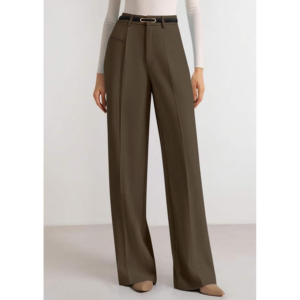 Prettygarden กางเกงสแล็คเอวสูงระบายอากาศสำหรับผู้หญิง, ชุดเดรสกางเกงใส่ทำงานลำลองกางเกงขาบานสำหรับ2025