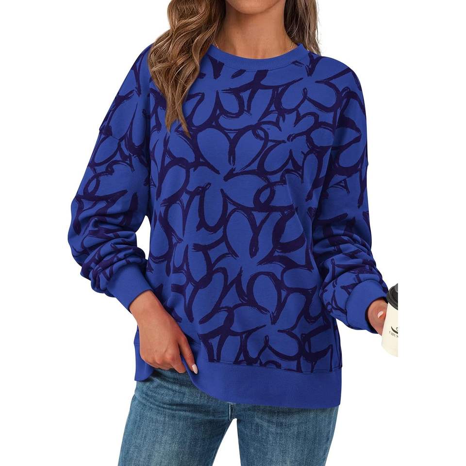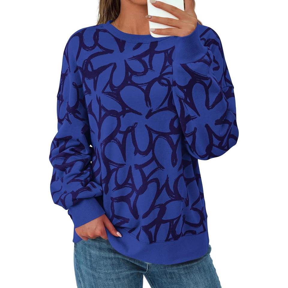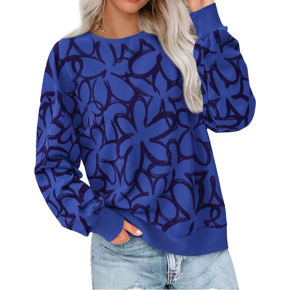 เสื้อสเวตเชิ้ตลายกราฟิกสำหรับผู้หญิง คอกลม พิมพ์ลายดอกไม้ แขนยาว สไตล์น่ารักลำลอง สำหรับฤดูใบไม้ร่วง ปี 2025 ผลิตจากผ้าไหม