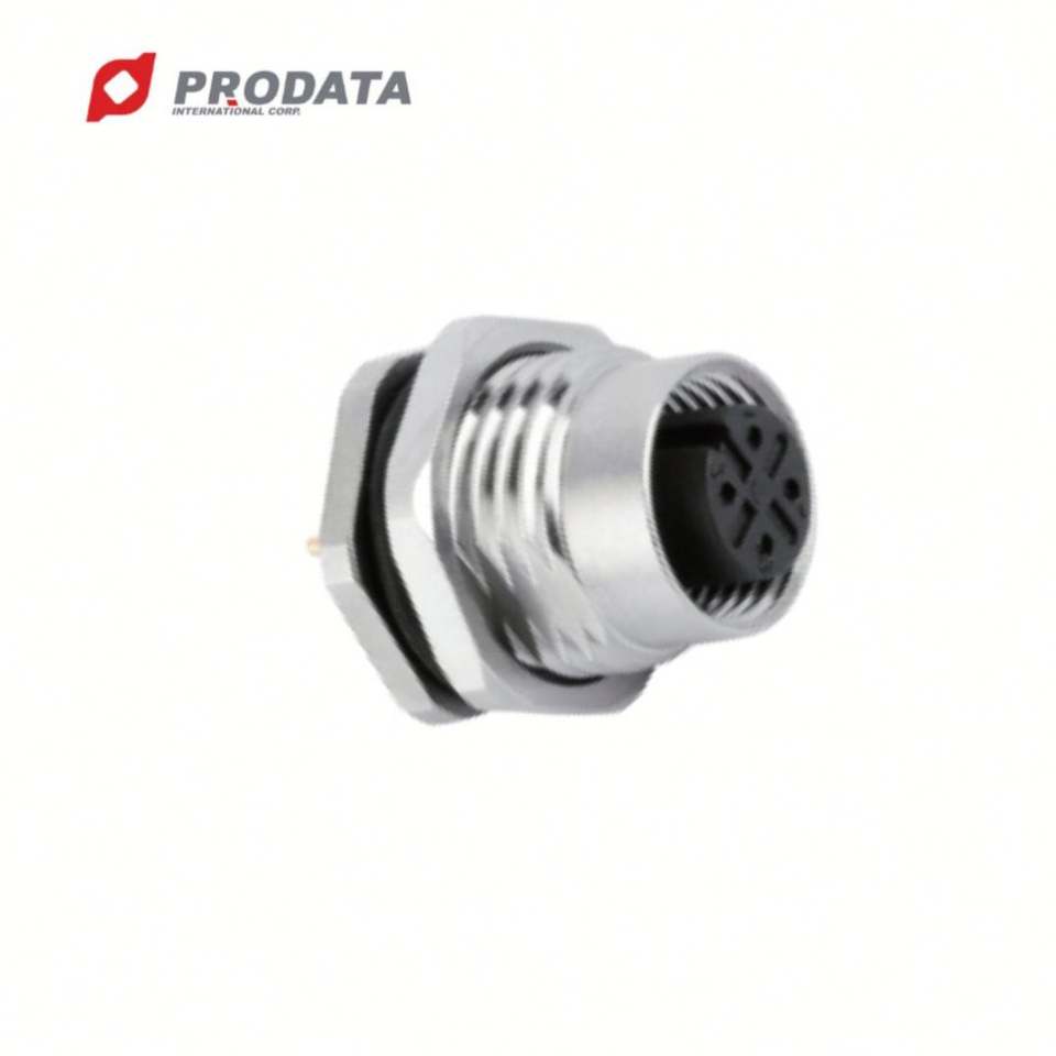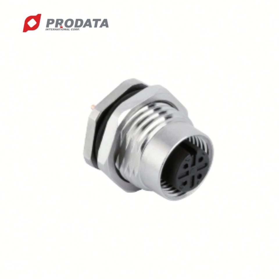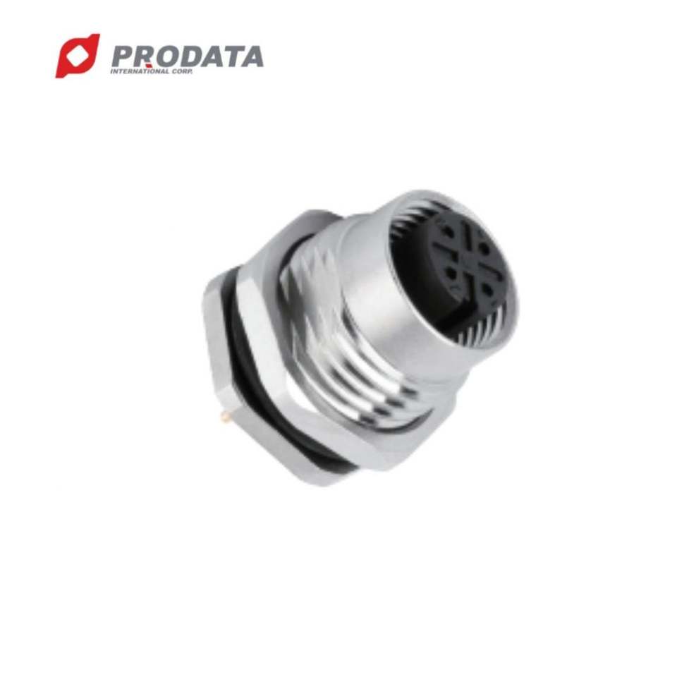ขั้วต่ออุปกรณ์กันน้ำ PRODATA M12 แบบตัวเมีย สำหรับเชื่อมต่อสาย PCB แบบ Dip-Solder สำหรับใช้งานในรถยนต์