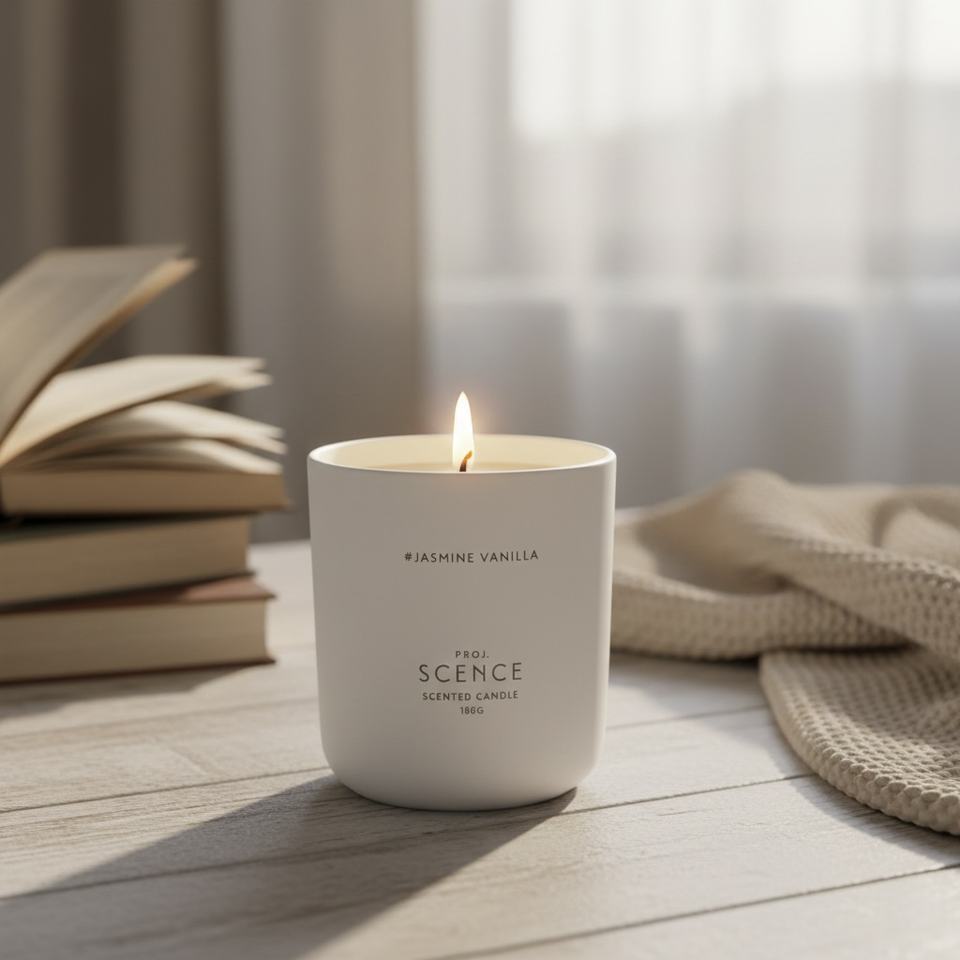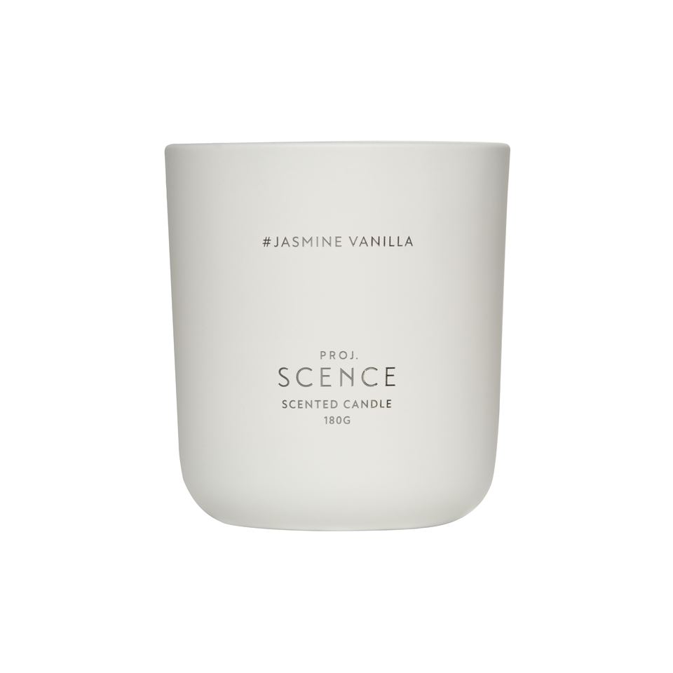 เทียนหอมกลิ่นมะลิวานิลลา PROJ.SCENCE ในโถเซรามิก ทำจากขี้ผึ้งและไขถั่วเหลือง ช่วยปรับอากาศให้สดชื่น สไตล์มินิมอล รูปทรงกระบอก