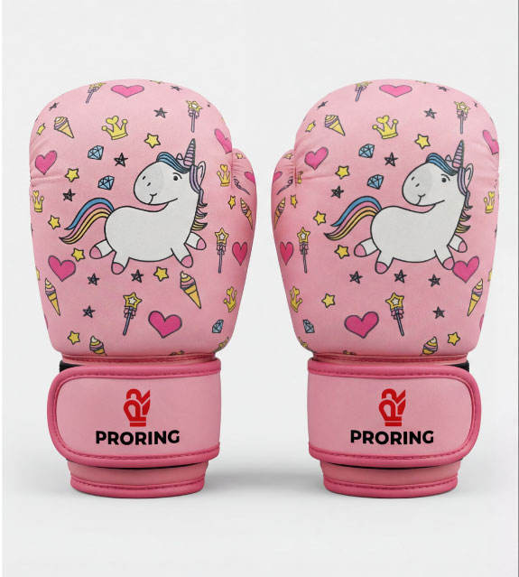 PRORING ถุงมือชกมวยสำหรับเด็ก สีชมพู ลายยูนิคอร์น หนัง PU สำหรับฝึกซ้อมมวยไทย MMA